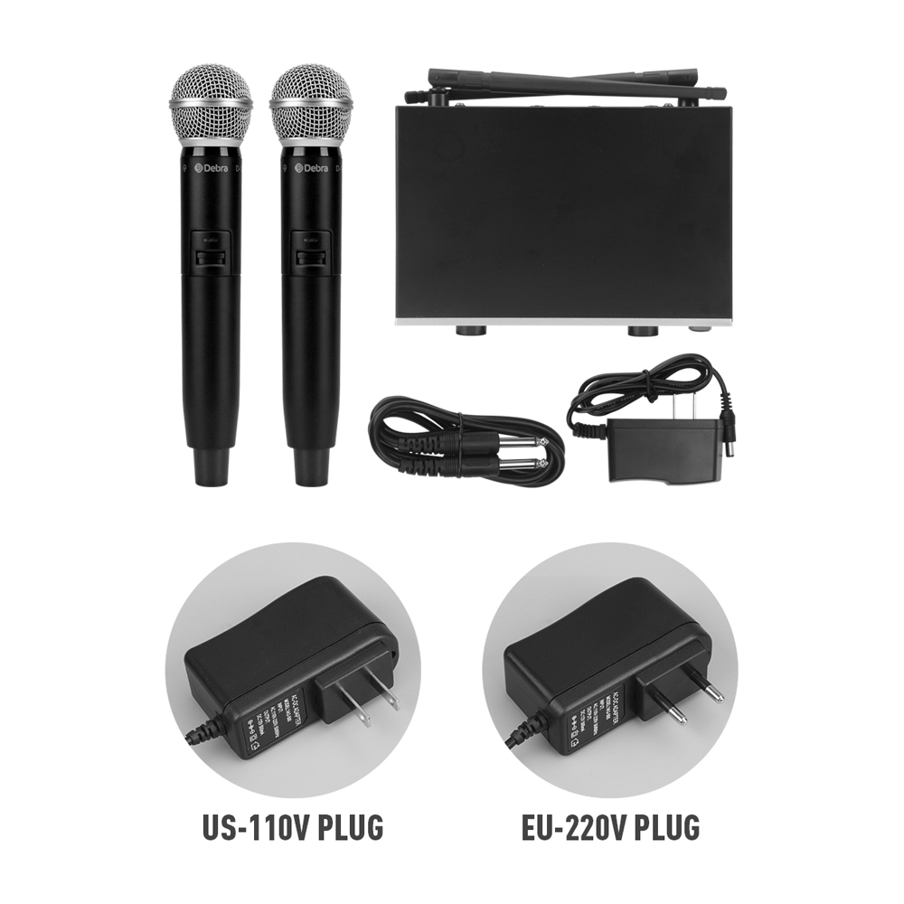 Debra Audio D-120 UHF Wireless Microphone System Dual Handheld Microphones/Dual Lavalier & Headset Microphones Suit for All Types Of Performance Singing Karaoke Speecn in Church Home Class It is a high quality professional and reliable 2 channel UHF wireless handheld microphone systems. It use s the most advanced technology called SMT (Surface Mounted Technology) and is made of the highest quality surface mounted components to ensure its quality and reliability. It's ideal for professional performance, in church or karaoke use.
