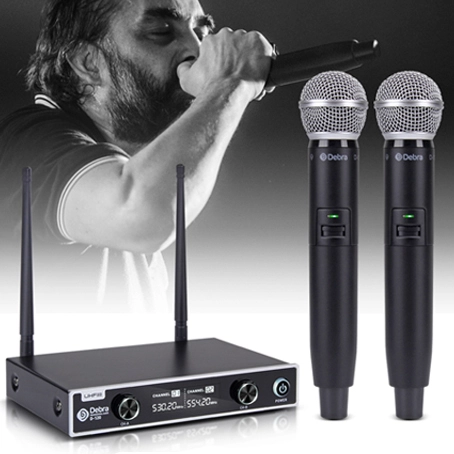 Debra Audio DU4004 4 channel wireless microphone system.There series products adopt UHF frequency and use the international standard common frequency which can be used in all over the world. Due to the low frequency and many reasons, traditional wireless any digital equipments. Squelch circuit usually analyzes the intensity of the RF frequency channel instead of the noise and the needed signal. Using the low traditional wireless microphone in the complex environment or when the signal of the microphone is week or the microphone is closed, the squelch circuit many suddenly opened which result the receiver sending out a strong burst of noise. Do not change the frequency when using one set system.It ideal for church, small DJ KJ stage, birthday wedding or family party,conference, classrooms, small karaoke night etc.